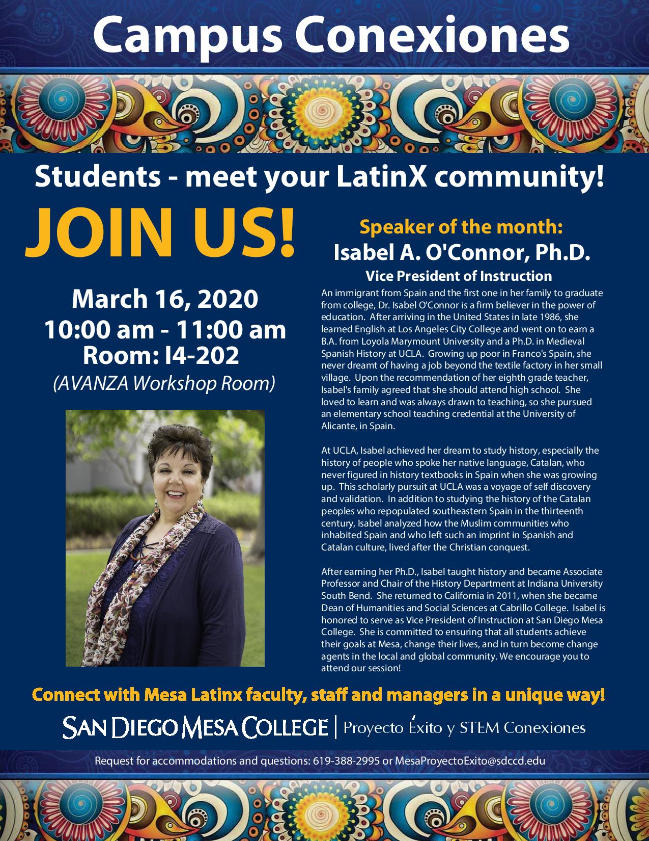 San Diego Mesa College YouTube: https://youtu.be/eZrWehz30EU - March 16th, 2020 - Isabel A. O'Connor (Vice President of Instruction)