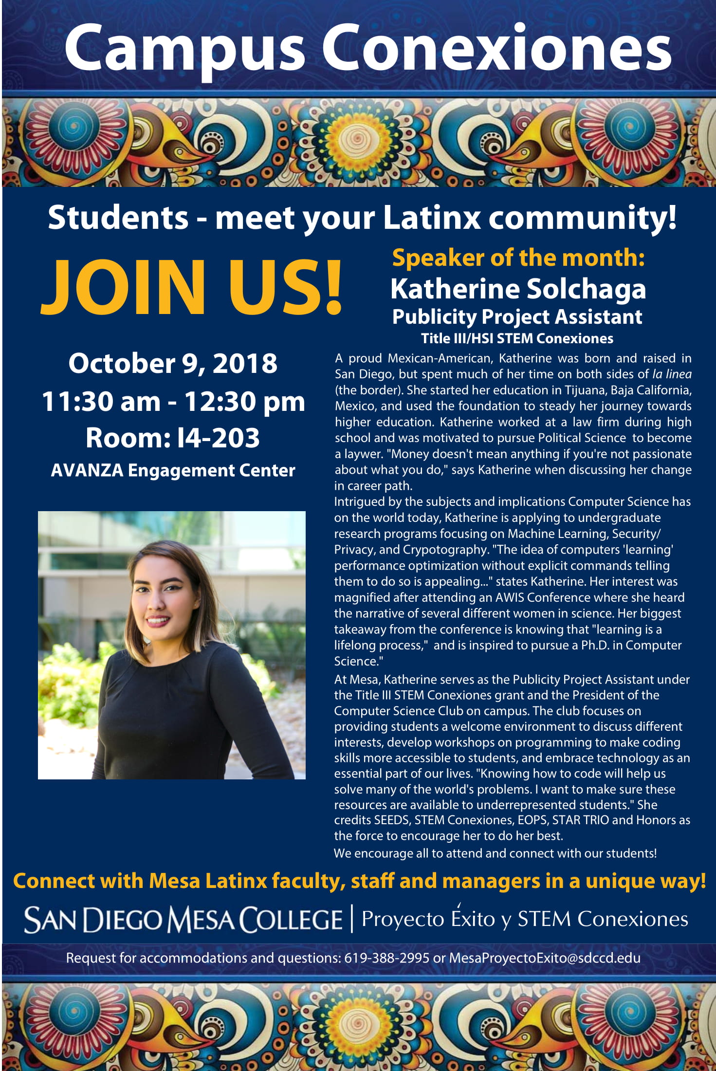 - October 9th, 2018 - Katherine Solchaga (Mesa student and HSI Office Assistant)