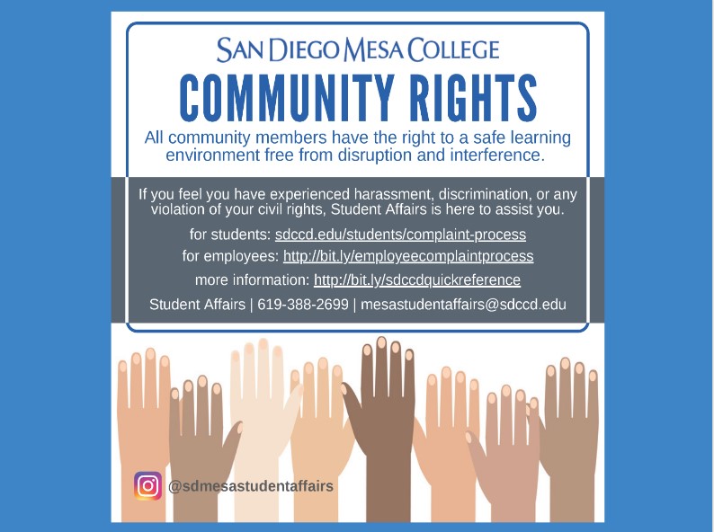 - If an incident involves, racial, gender, or any type of civil rights violation, or violence on zoom or in the classroom, please immediately remove the disruptive student and separate you and your students, and immediately contact College Police 619-388-6405, Student Affairs 619-388-2699, School Dean, and Chair of the Department.
