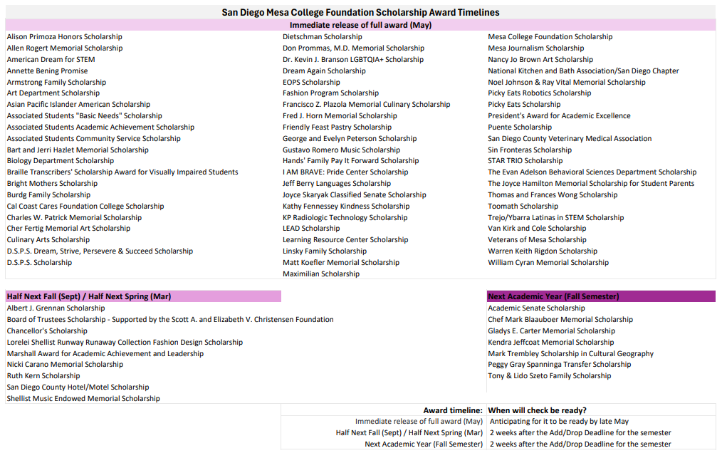 There is a scholarship for everyone. Mesa College Foundation Scholarships include